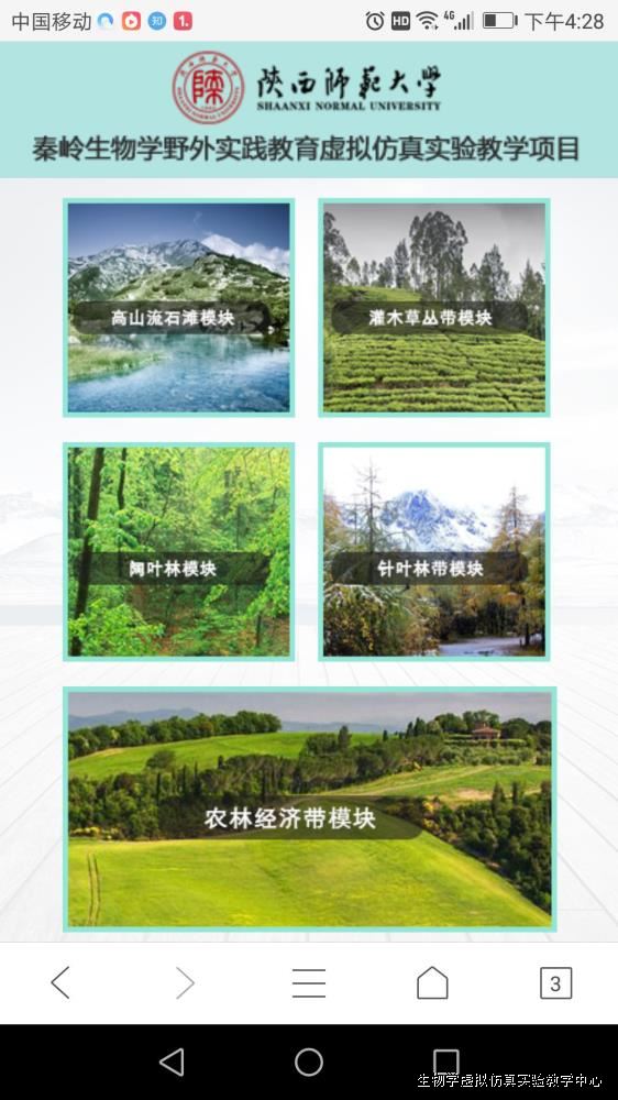 秦岭生物学野外实践教育虚拟仿真系统手机版上线